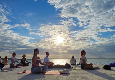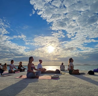 Participe de nossas sessões de yoga ao ar livre na praia. Venha relaxar e se conectar com a natureza em um ambiente tranquilo e inspirador. As práticas são adequadas para todos os níveis de experiência em yoga.